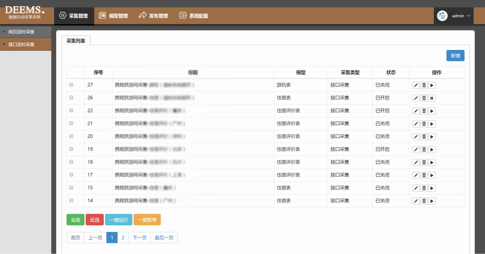 數(shù)據(jù)采集抓取系統(tǒng)是旅游大數(shù)據(jù)中心的一個重要組成部分,通過采集抓取系統(tǒng)將旅游大數(shù)據(jù)中心的所采集的有關(guān)所有旅游行業(yè)數(shù)據(jù)進行管控。數(shù)據(jù)所涵蓋的范圍主要包括旅游行業(yè)吃、住、行、游、購、娛、便民等數(shù)據(jù)。