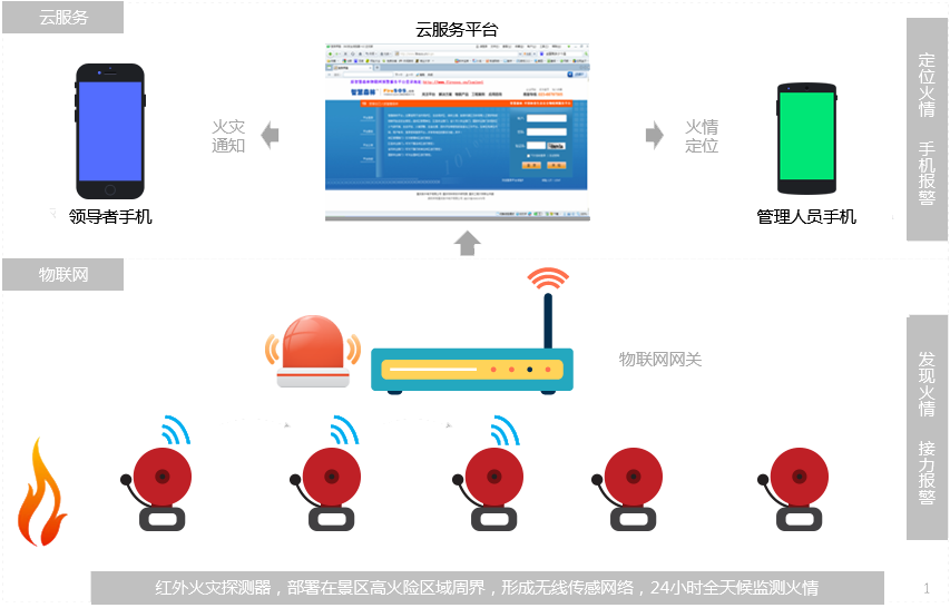 以紅外“傳感器網(wǎng)絡(luò)”為支撐,全天候、全自動(dòng)監(jiān)測(cè)和預(yù)警景區(qū)人行道、車行道、觀光區(qū)、聚集區(qū)和休閑區(qū)等人員活動(dòng)頻繁的林區(qū)及其周界的早期火險(xiǎn)災(zāi)現(xiàn)象,實(shí)施網(wǎng)絡(luò)化、自動(dòng)化的氣象火險(xiǎn)等級(jí)預(yù)測(cè)預(yù)警、實(shí)時(shí)火險(xiǎn)災(zāi)監(jiān)測(cè)預(yù)警,有效保護(hù)景區(qū)文物和森林資源,提高管理水平和防火能力,轉(zhuǎn)變管理模式,完善工作機(jī)制,降低運(yùn)營(yíng)成本,提升社會(huì)效益,保障景區(qū)可持續(xù)的健康協(xié)調(diào)發(fā)展。
