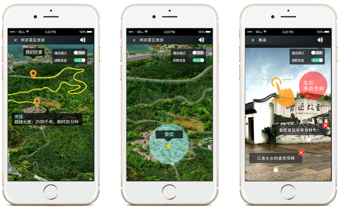 根據(jù)游客位置自動(dòng)獲取講解信息,實(shí)現(xiàn)移步換景,為游客提供“走到哪里、講到哪里”導(dǎo)游服務(wù)。