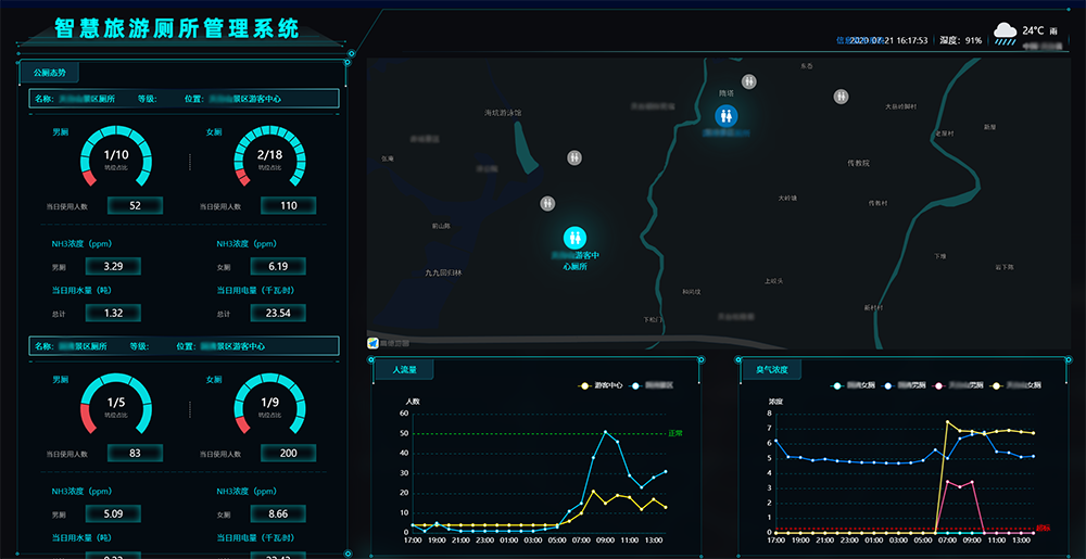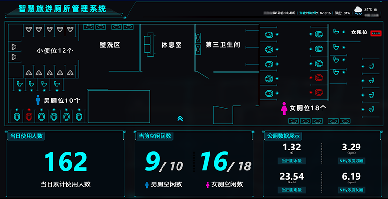 智能廁所系統(tǒng)基于4G、WIFI等無線通信技術,通過智能網關、無線設備,無線采集設備無線連接及控制設備,搭載相應的設備,如顯示屏、攝像頭、溫濕度傳感器、氣體傳感器一鍵告警、智慧照明等數據傳至云平臺,創(chuàng)建公廁管理數據庫,實現公廁環(huán)境、能耗、運維等方面的實時監(jiān)管平臺,為實現公廁的智能化應用管理提供數據支撐。