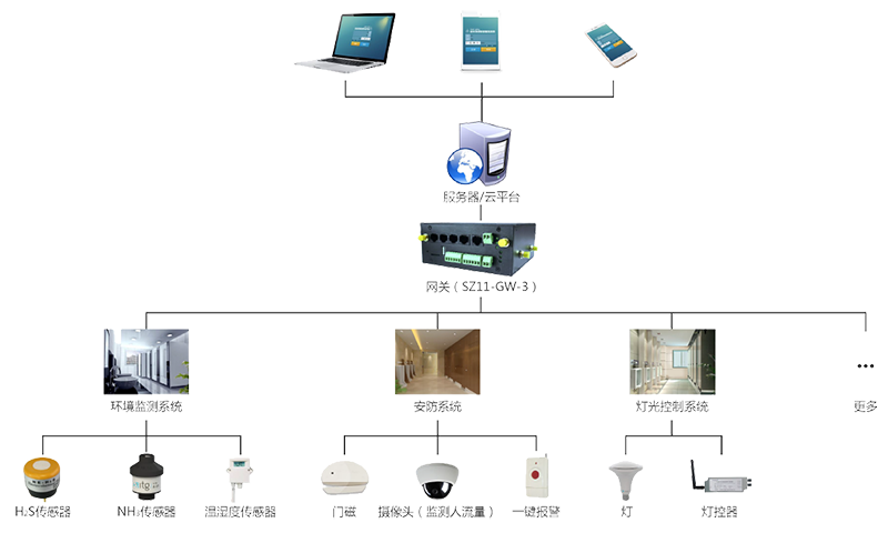 將數據通過智能網關,將數據匯集至云平臺,進行分析、處理,反饋給公廁顯示屏、公廁APP或者公廁掃描小程序。