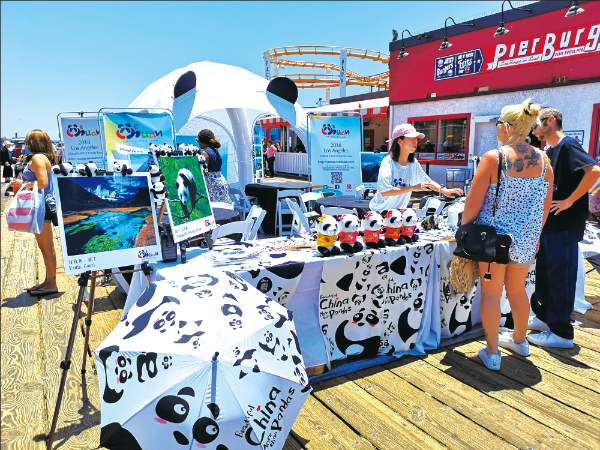 △ 2018年6月28日,在美國洛杉磯圣莫妮卡海灘進行了四川旅游宣傳,以熊貓走世界美麗四川活動為背景,熊貓彩繪DIT活動吸引了不少當(dāng)?shù)厝罕娂坝慰汀?/p>