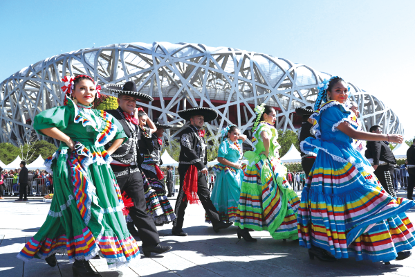 △ 2018年10月1日,第二十屆北京國際旅游節(jié)在北京奧林匹克公園慶典廣場拉開帷幕,國內(nèi)外團隊的精彩演出令現(xiàn)場游客叫好。盛佳鵬攝