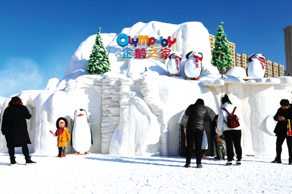 △ 2018年12月23日,沈陽市首屆丁香湖奧悅冰雪嘉年華現(xiàn)場,眾多游客賞雪玩雪,拍照留念。劉寶成攝