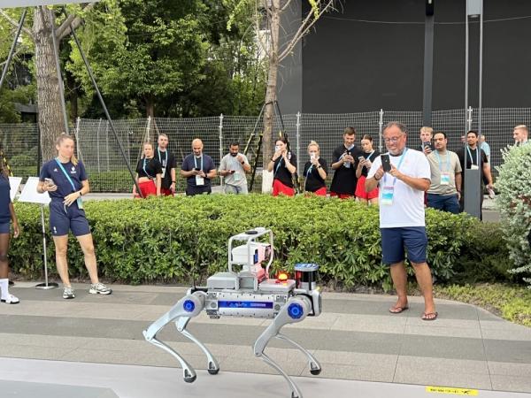 不遠(yuǎn)處,搭載國(guó)產(chǎn)空間大模型“悠然無(wú)界”的機(jī)器狗“GoGo”正頂著烈日運(yùn)送行李。其防風(fēng)防雨機(jī)身與50公斤負(fù)重能力,讓它成為全天候“超級(jí)向?qū)А?。更令人驚嘆的是,為運(yùn)動(dòng)員服務(wù)的這些科技產(chǎn)品,90%都來(lái)自成都本土創(chuàng)新。