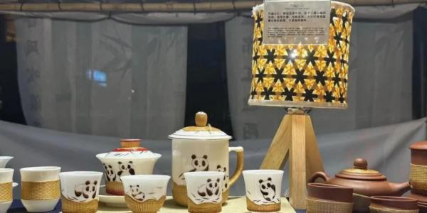 在崇州道明竹編非遺傳承人劉羅琳的攤位,聾啞匠人用手機(jī)打字與顧客交流。其獨(dú)創(chuàng)的漆器竹編蓋碗茶具將熊貓、漆藝與竹編巧妙融合,引得運(yùn)動(dòng)員紛紛合影留念。這些由殘疾人制作的竹編燈罩透出暖光,不僅照亮了攤位,也照亮了非遺傳承的堅(jiān)韌力量。