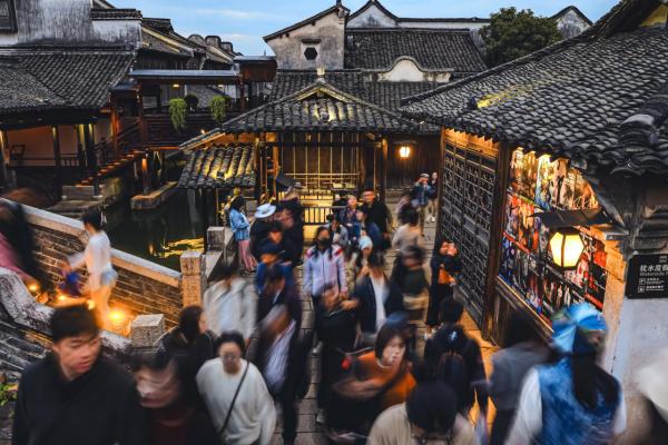 文化鑄魂讓水鄉(xiāng)底蘊(yùn)點(diǎn)亮特色體驗(yàn)。烏鎮(zhèn)深挖江南水鄉(xiāng)文化內(nèi)核,結(jié)合春節(jié)、端午、中秋等傳統(tǒng)節(jié)日,以文化為主線推出各項(xiàng)特色活動。2025年春節(jié)期間的“水上年市”,融合傳統(tǒng)燈會與非遺展演,生動還原江南傳統(tǒng)年俗?!盀蹑?zhèn)端午風(fēng)俗志”則包含了龍舟船宴、安康福市、游園祈福等活動,端午期間烏鎮(zhèn)石門旅游度假區(qū)日均到訪游客31.5萬人次,列浙江省第三名。