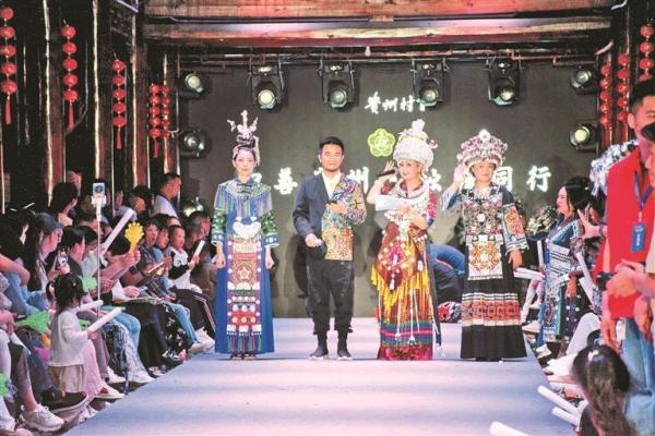 2024年7月,他發(fā)起首次公益“村T”活動,吸引了600名村民演員和2000名觀眾參與。如今,銀飾清脆作響,繡裙隨風(fēng)輕揚,七旬老人牽著孫兒穩(wěn)步走上T臺,年輕游客揮袖轉(zhuǎn)身、笑容燦爛?!按?/span>T”已舉辦了500余場主題走秀,吸引近5萬名群眾登臺展示。在“村T”吸引下,超過40萬名游客進場觀看,秀場附近集市上,服裝租賃、飾品銷售額增長200%,并帶動周邊民宿、餐飲業(yè)發(fā)展。